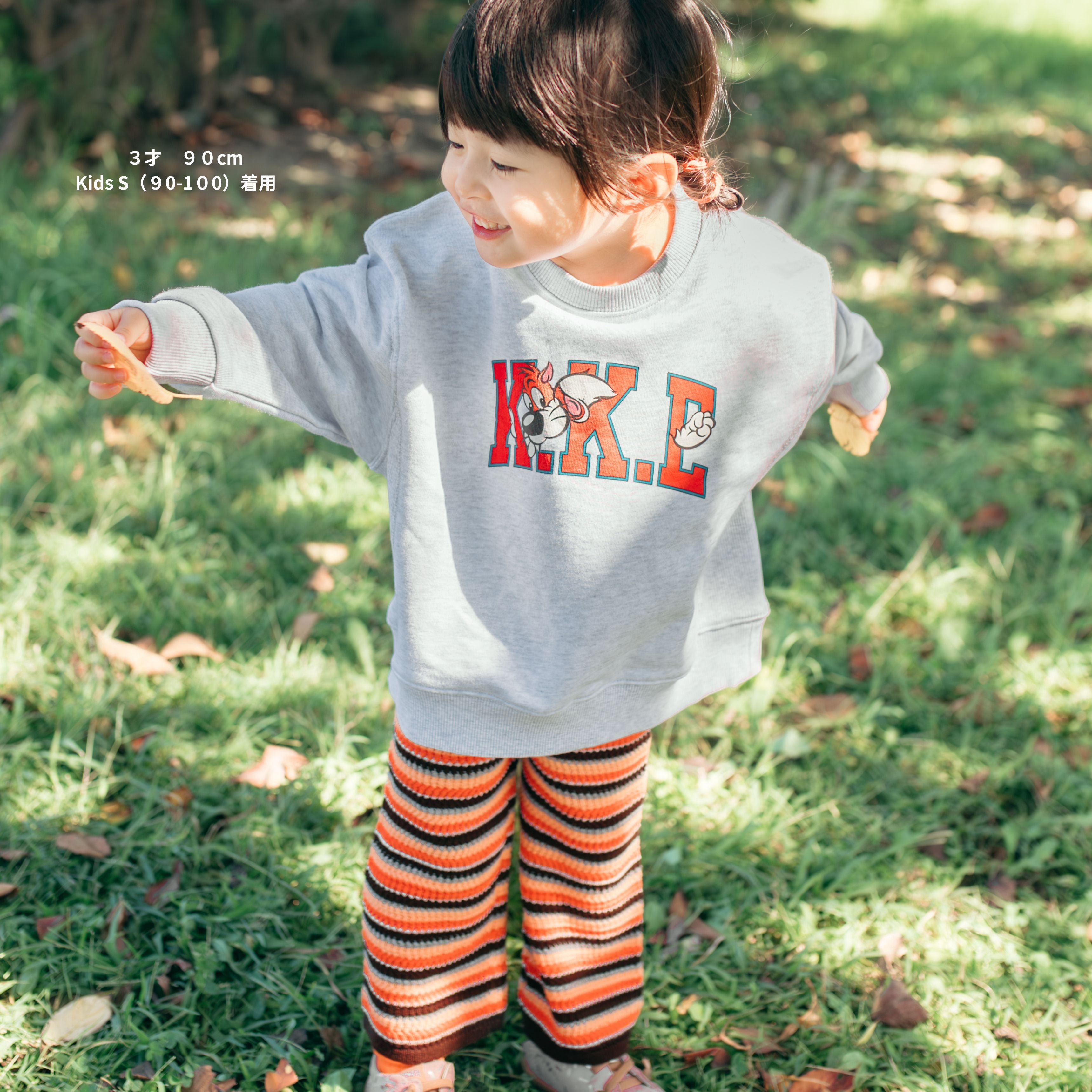 男女問わず可愛く、かっこよく着られるカレッジスウェット。