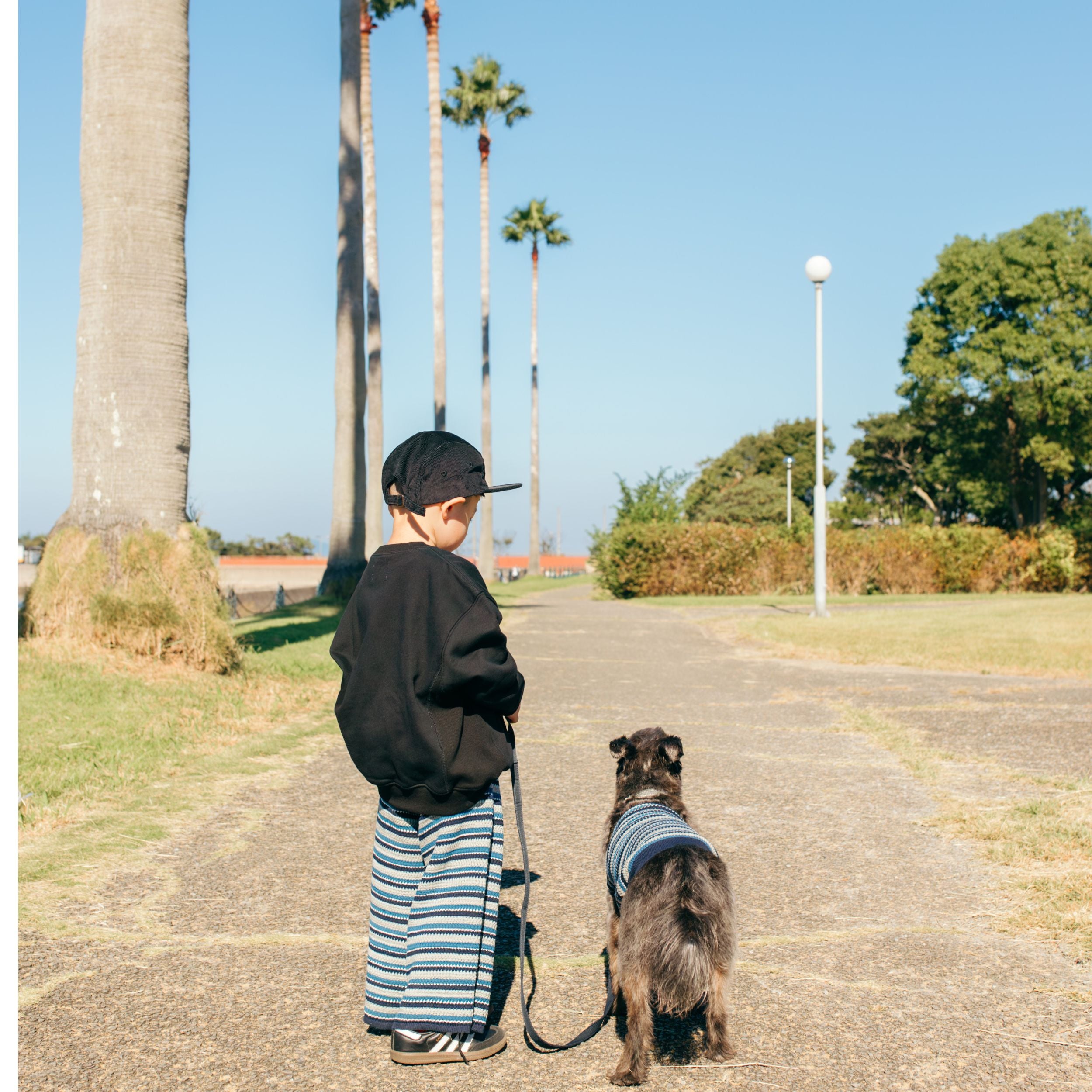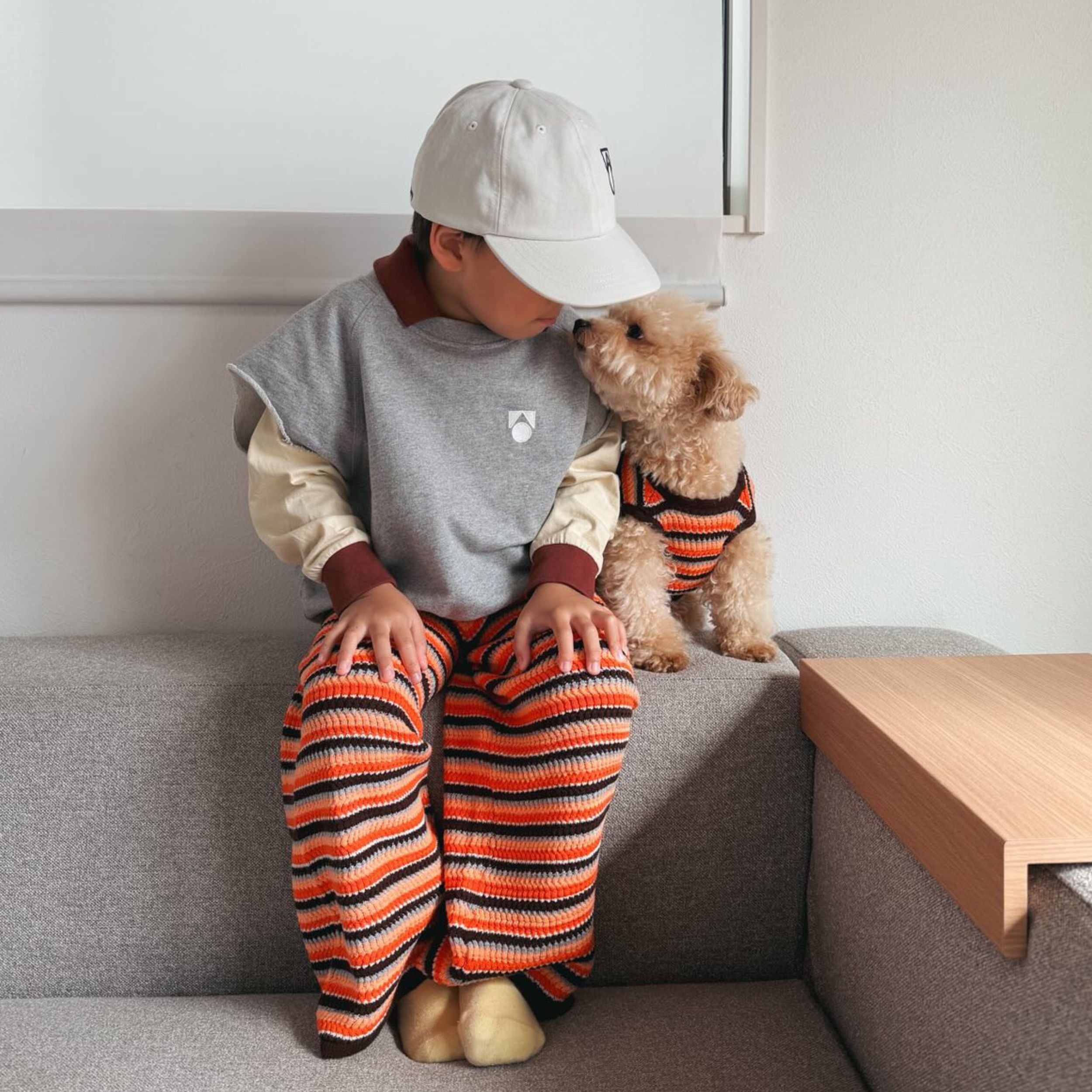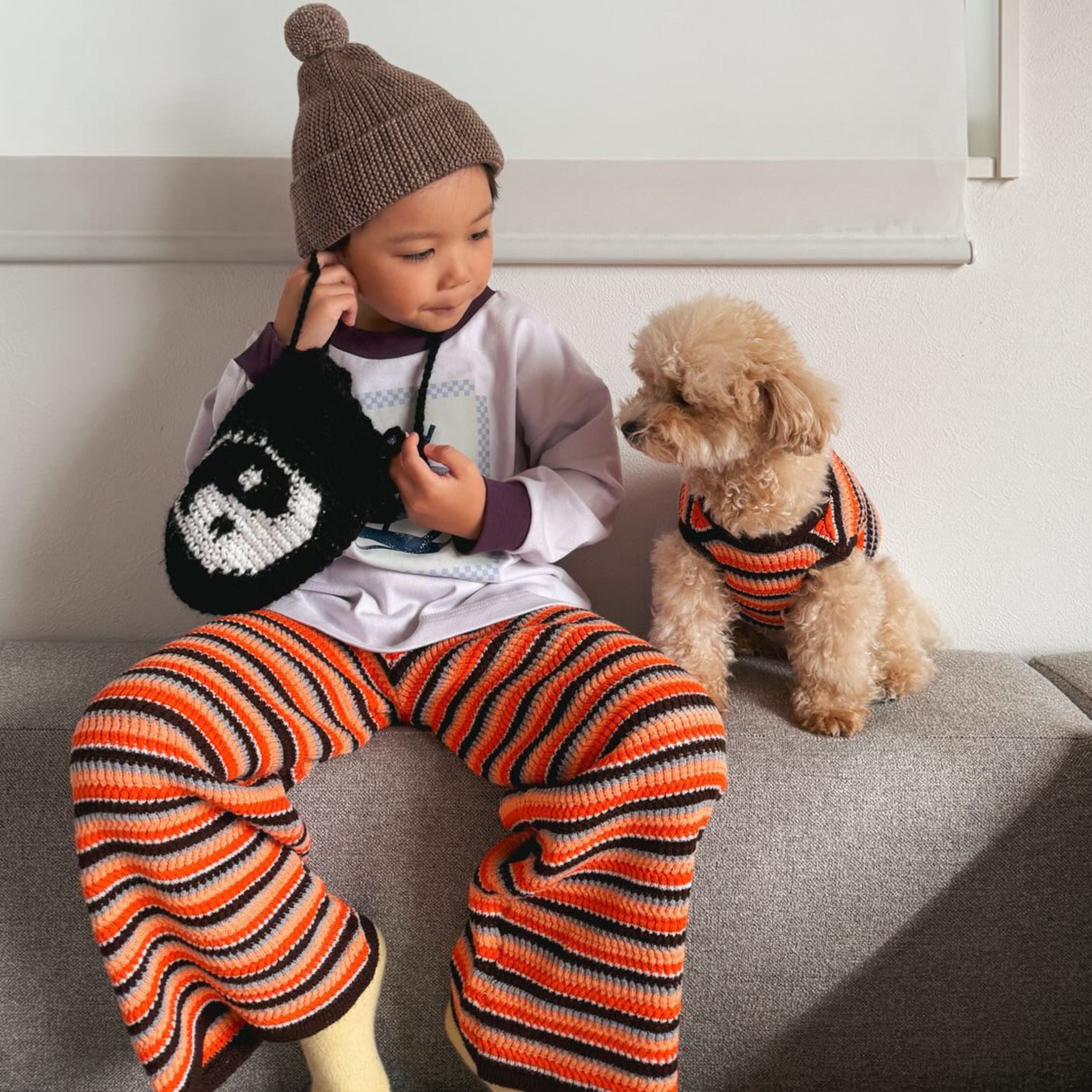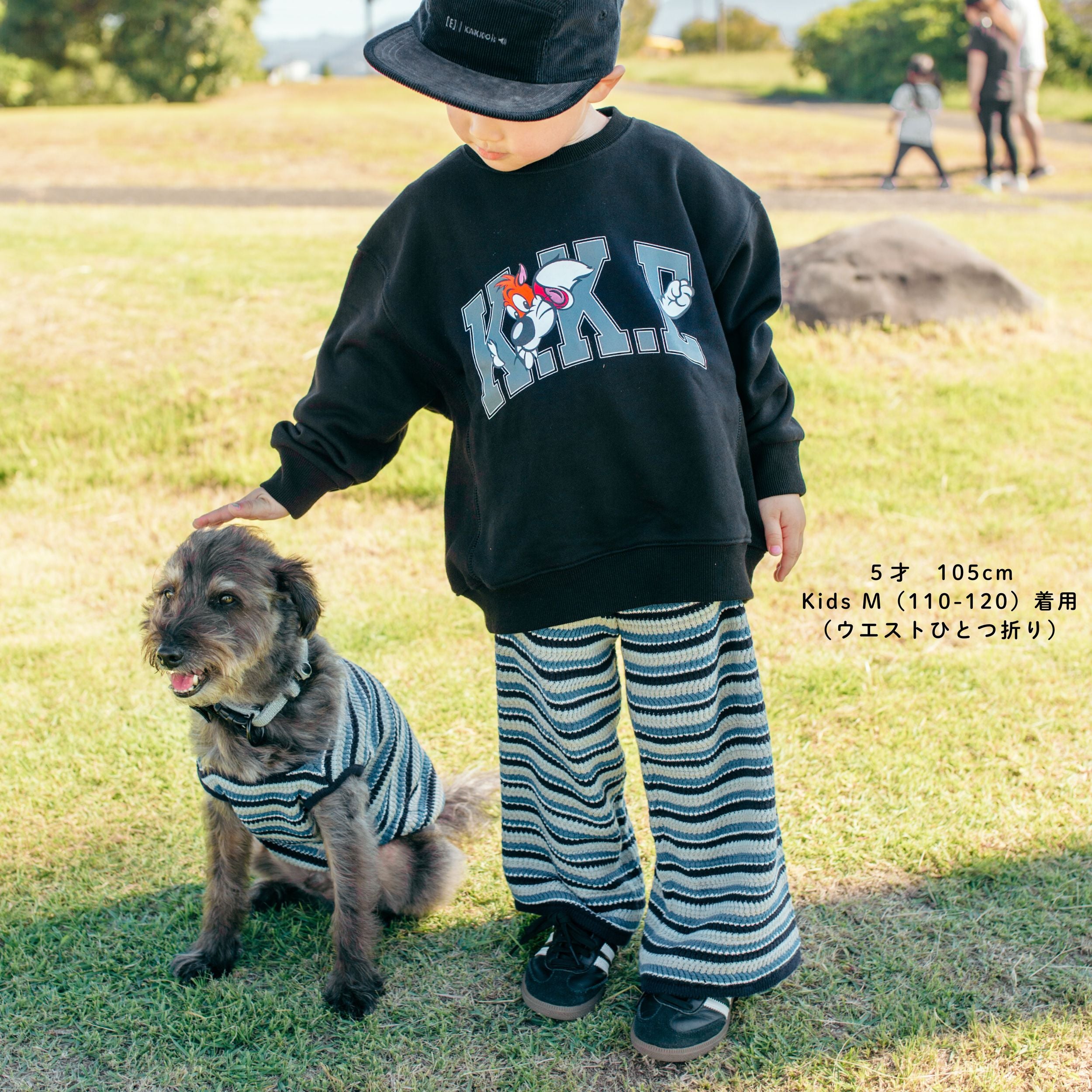 履き心地も良く、ボーダーカラーもポップで可愛いニットパンツ。これからの季節に重宝すること間違いなしです!是非わんちゃんとのお揃いも楽しんでもらえると嬉しいです🐶