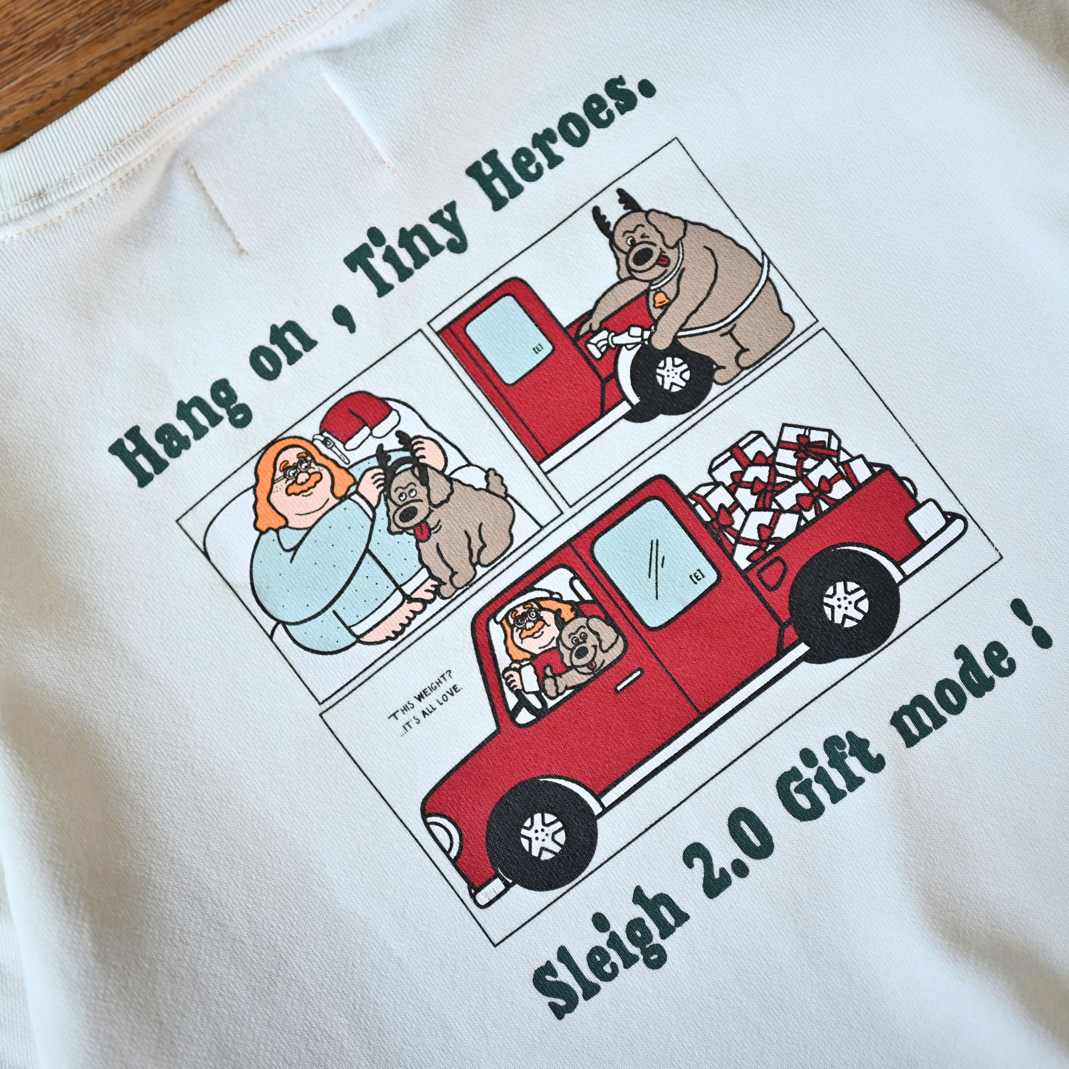愛犬と共にプレゼントを届けるサンタ"がテーマのスウェット。