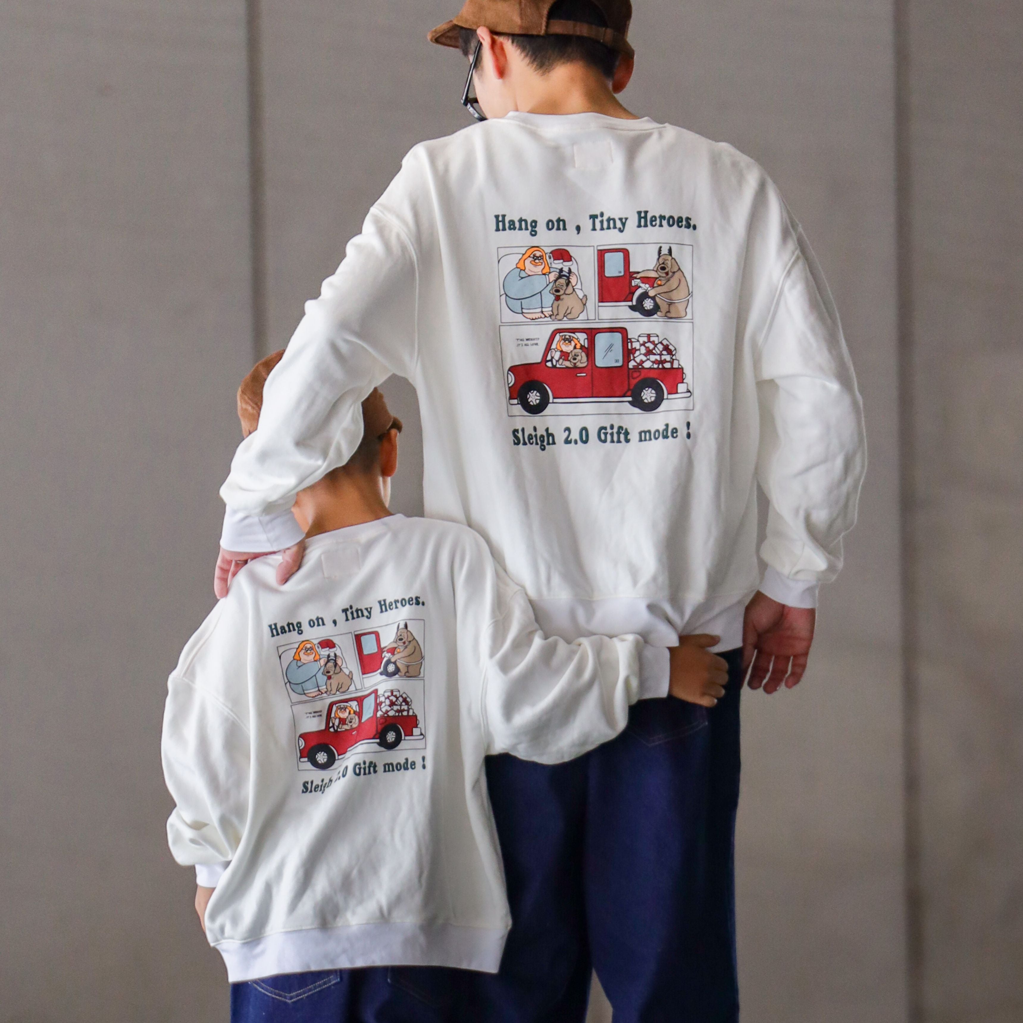 そんな“今"っぽくて、ちょっと笑顔になれるシーンを描いたスウェットです。